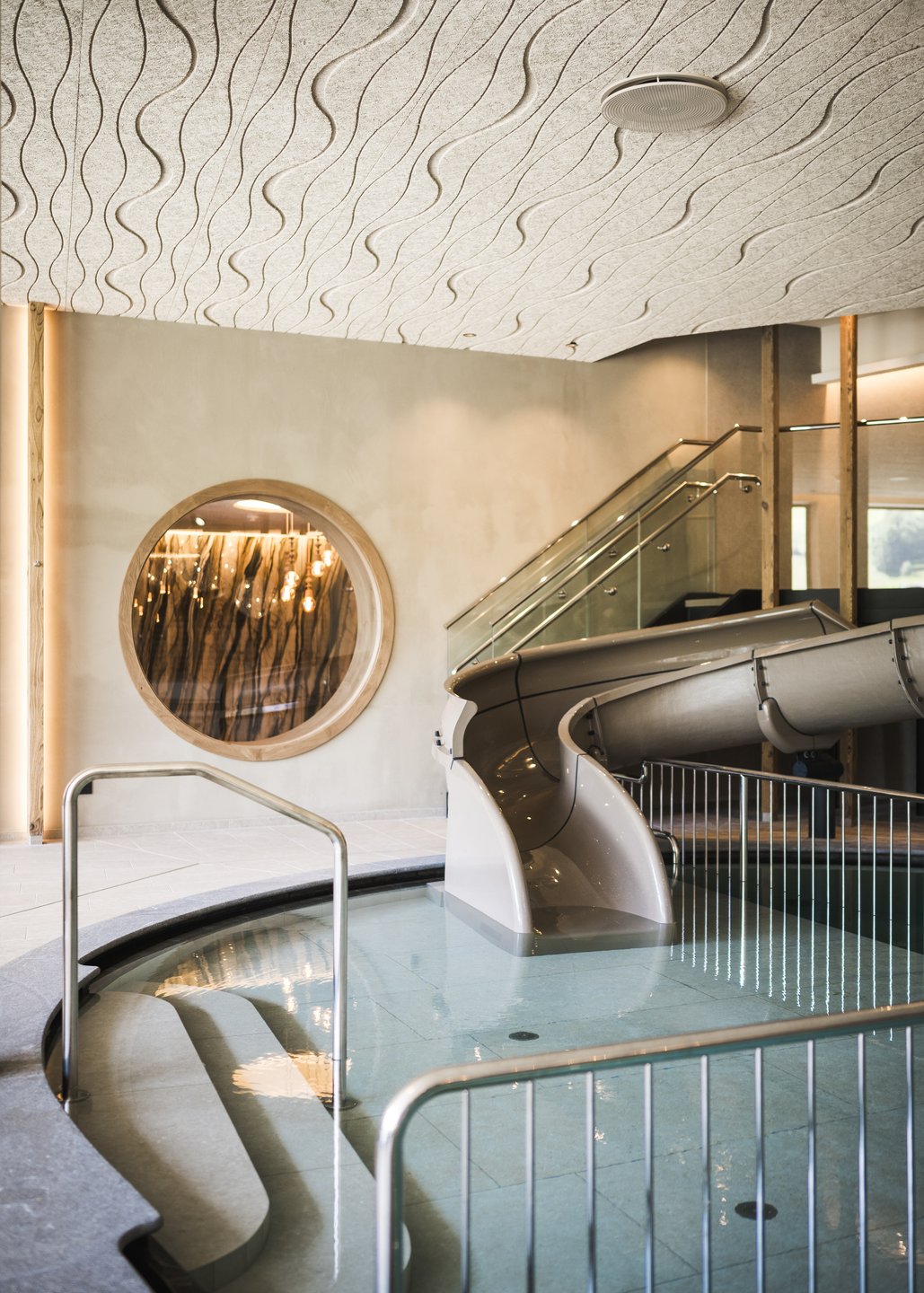 The new Dolomites Family Spa, featuring a children's pool with a slide, an outdoor whirlpool, various relaxation oases and dress-on saunas, offers the perfect balance of fun and relaxation for the whole family.