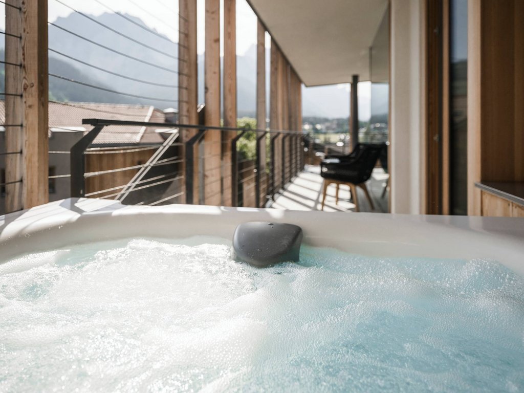 Sie sehnen sich nach Ruhe und Erholung. Danach, die harmonisierende Kraft der Natur zu spüren. Für sich sein, Energie tanken, aufleben. Ein eigenes kleines Spa im Zimmer oder in der Suite? Herrlich. Maßgeschneiderte Wellnessmomente ganz nach Ihrem Geschmack. Vor dem Abendessen noch ein belebender Saunagang. Wohlig-warme Entspannung im Jacuzzi auf dem Balkon mit Blick auf die majestätischen Dolomitenriesen. Und danach direkt in die großzügige Relax-Dusche Ihres Badezimmers. So geht Private Spa der Extraklasse – in Ihrem Hotel mit Whirlpool im Zimmer in Südtirol.